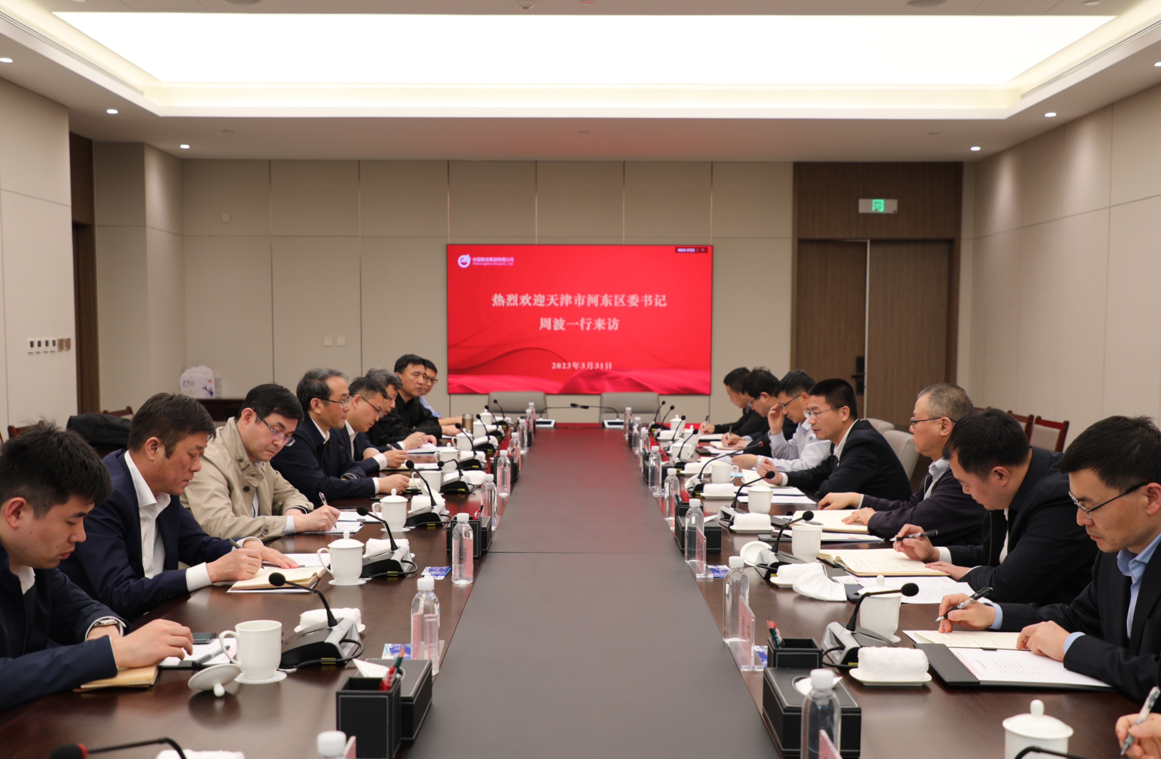 3月31日,中國物流集團(tuán)黨委常委、副總經(jīng)理,中國鐵物黨委書記、董事長杜波會(huì)見天津市河?xùn)|區(qū)委書記周波一行,雙方就進(jìn)一步深化合作進(jìn)行友好會(huì)談。河?xùn)|區(qū)委常委、區(qū)委辦公室主任李鵬旺,中國鐵物黨委委員、副總經(jīng)理朱旭參加會(huì)談。